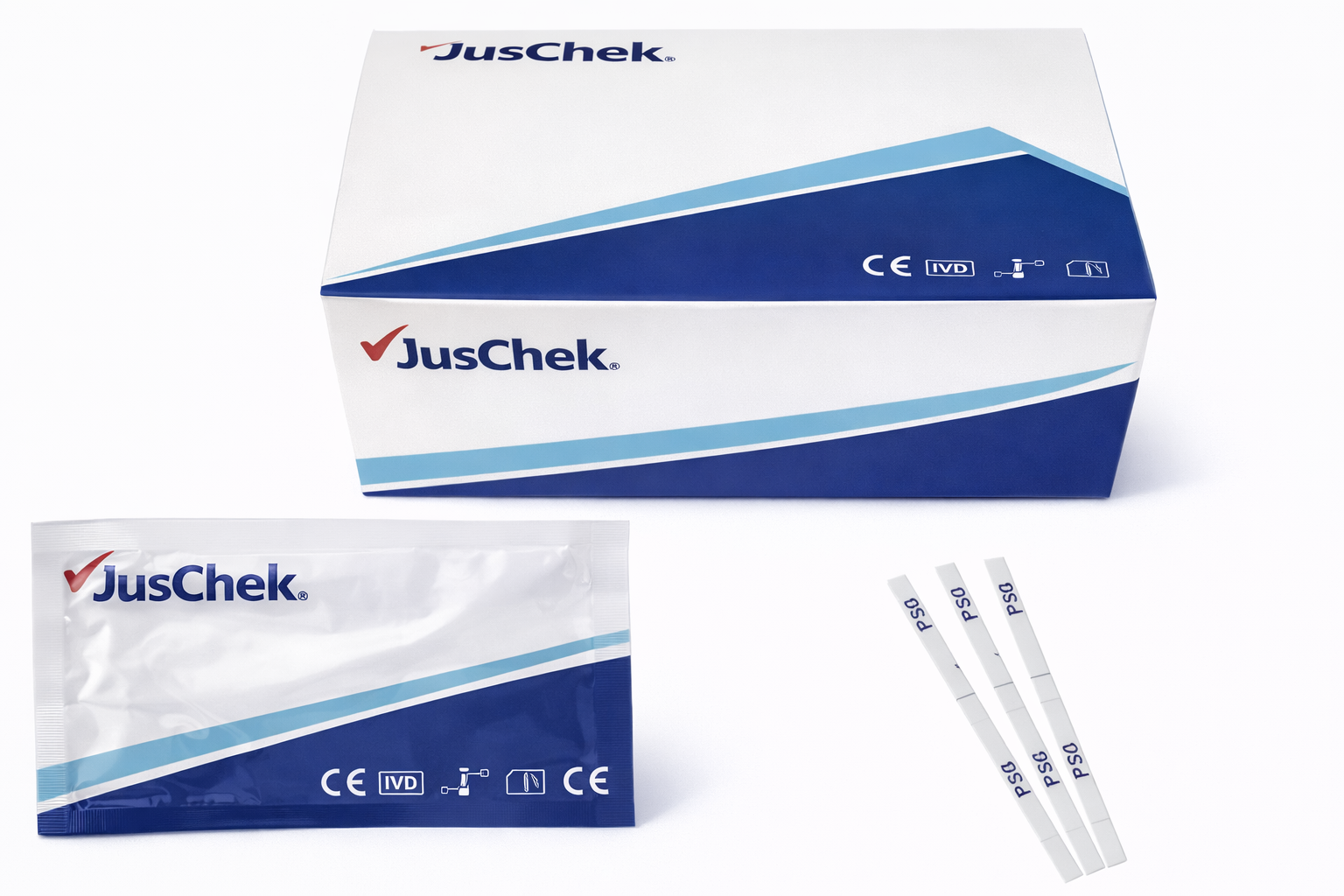Prueba rápida de PSA (Antígeno Prostático Específico) basada en el método inmunocromatográfico, diseñada para la detección cualitativa de niveles elevados de PSA en muestras de sangre total, suero o plasma. Es una herramienta eficaz para el tamizaje prostático y apoyo en la detección temprana de alteraciones de la glándula prostática, como hiperplasia prostática benigna o cáncer de próstata. Ofrece resultados rápidos y confiables en pocos minutos, es de fácil uso y no requiere equipos especializados. Se presenta en caja de 25 pruebas, lista para uso diagnóstico in vitro